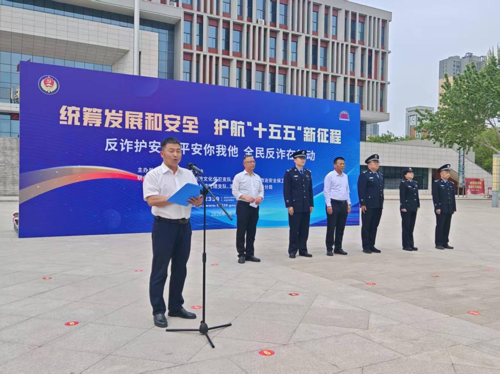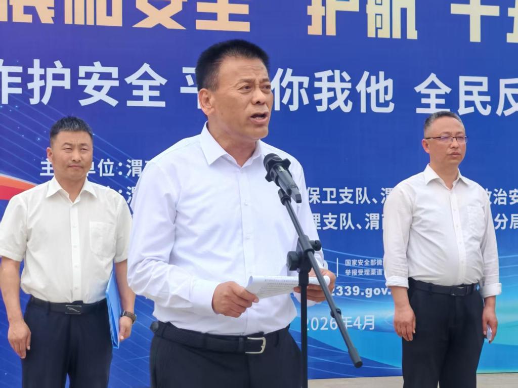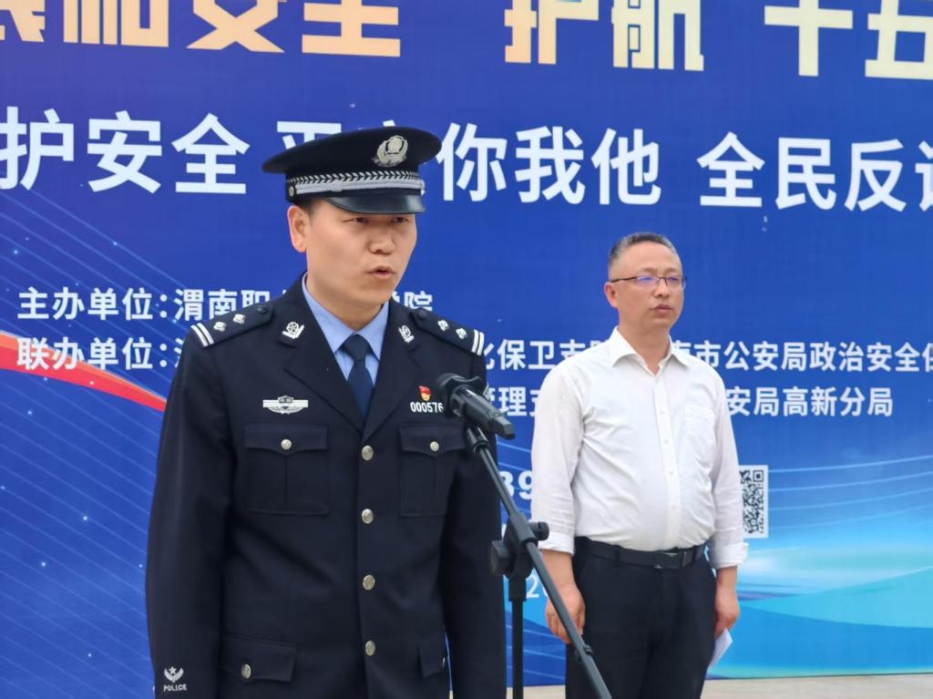 学生处处长赵国辉宣读《全民国家安全教育日暨反诈防骗倡议书》,号召广大师生主动学习国家安全知识,遵守法律法规,防范各类安全风险,以实际行动维护校园与社会安全稳定。渭南市公安局高新分局副局长薛凯宣布我校2026年全民国家安全教育日宣传活动正式启动。
