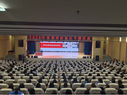 为进一步加强校园安全宣传教育,普及消防安全知识,提升师生消防安全意识和自防自救能力,4月1日下午,学校特邀高新消防救援大队消防宣传员刘丹,在新校区图书楼一楼报告厅开展2026年春季消防安全专题讲座。全校楼宇管理人员、餐饮及商业从业人员、安保人员和各二级学院师生代表共500余人参加,讲座由保卫处副处长朱江主持。